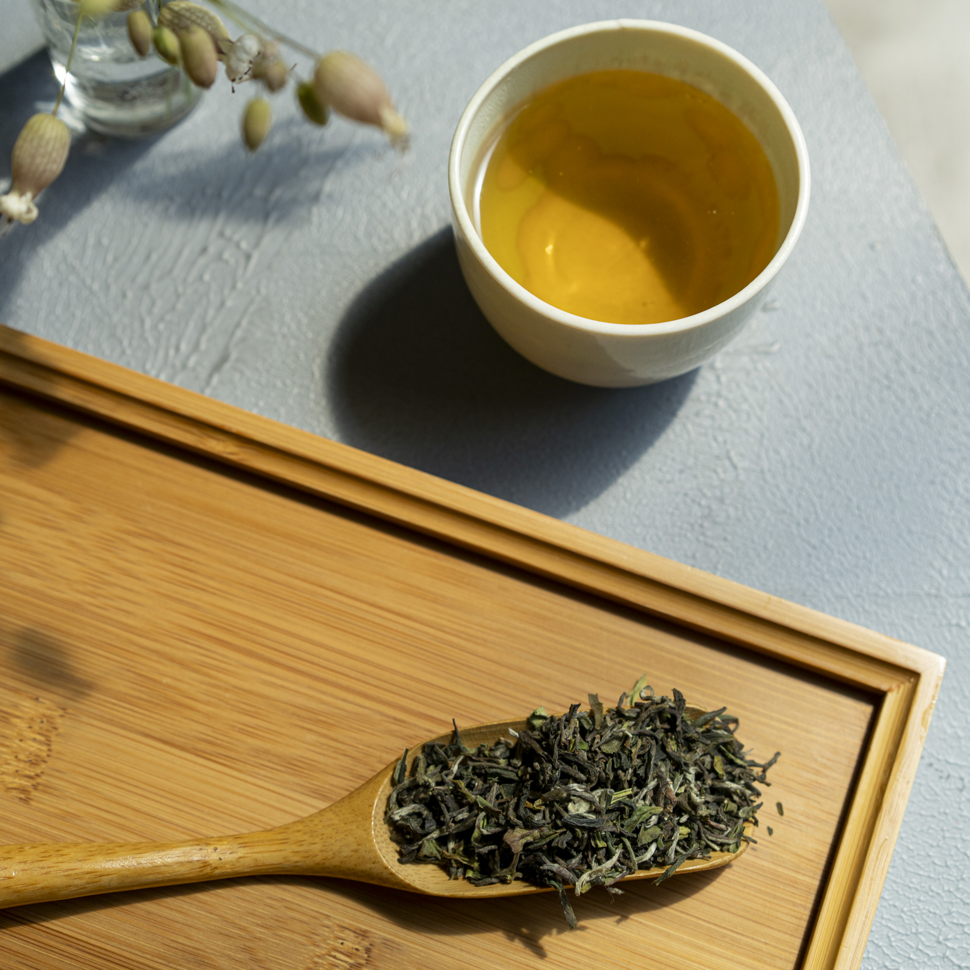 Le foglie subiscono un’ossidazione poco accentuata e si presentano con una sinfonia di verdi e un intenso profumo fiorito e fruttato.